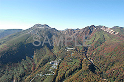 他の紅葉スポットと異なり、例外的に例年通りの美しさを見せてくれた、那須朝日岳と茶臼岳の全景写真です。 |