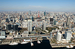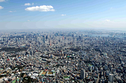 | 多摩川上空からの都心の空撮です。遠くにレインボウブリッジなどが見えます。 |