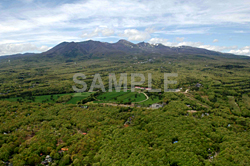 | 牧場やゴルフ場、別荘地が広がる那須高原の中心部からの新緑の高原空撮です。 |
