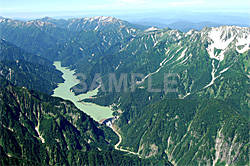 | 黒四ダムの空撮です。左手は立山連峰です。 |