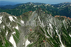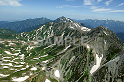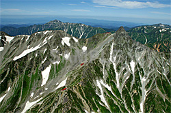 今回唯一の南アルプスの空撮です。北岳の東側斜面〜バットレスの夏の風景です。