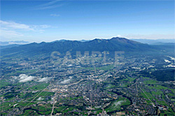 | 1と同様に、緑美しい佐久盆地上空から、浅間山と左手に籠の登山を収めました。